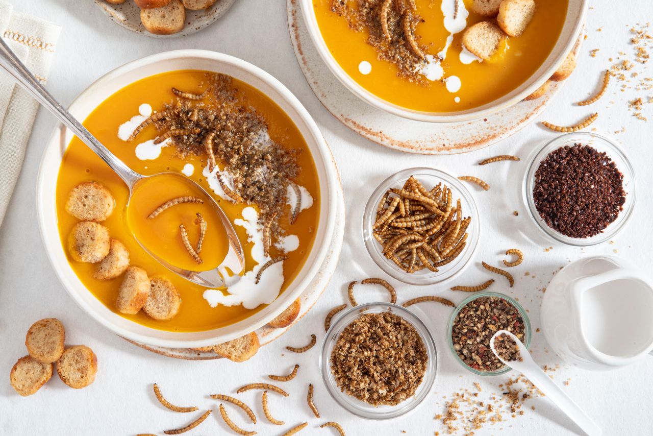 Kürbissuppe mit Mehlwürmern. Bild: Adobe Stock